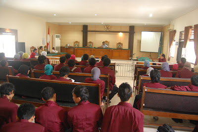 “Kami sangat bahagia telah dipercaya oleh Fakultas Syariah untuk dapat menularkan ilmu lapangan kami, walaupun hanya sedikit. Karena terkait pelaksanaannya yang hanya 5 hari, sehingga mungkin mahasiswa ini kurang merasa puas. Namun kami mempersilahkan bagi siapapun mahasiswa yang ingin menyaksikan atau mengikuti persidangan di sini dalam rangka menambah pengetahuan anda.” Tandas beliau, yang kemudian disambut tepuk tangan meriah dari mahasiswa . (UJ)